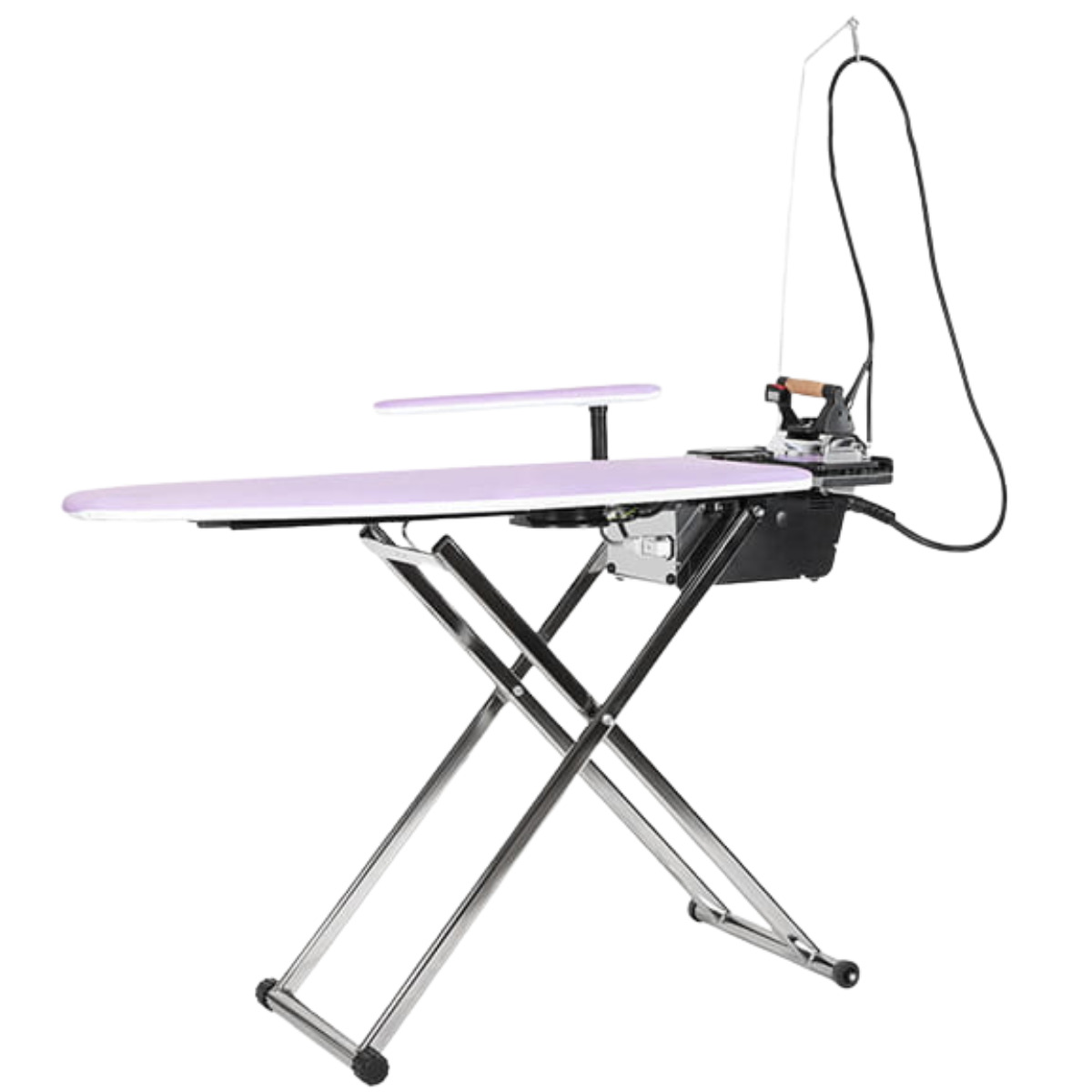 Stół prasowalniczy z automatyczną, zintegrowaną wytwornicą pary, żelazkiem i inteligentnym programowaniem czasu pracy turbiny