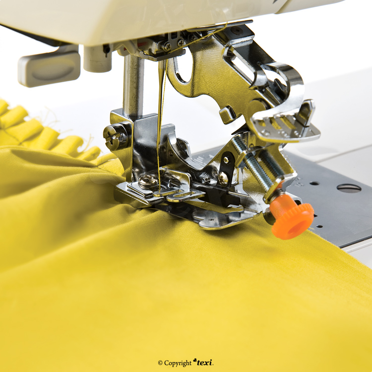 Specjalnie skonstruowana stopka do wykonywania zakładek i marszczenia z regulacją częstotliwości i głębokości (szerokości) zakładek. Idealna do modnego ozdabiania sukienek i bluzek oraz do eleganckiego wykańczania zasłon, narzut itp.