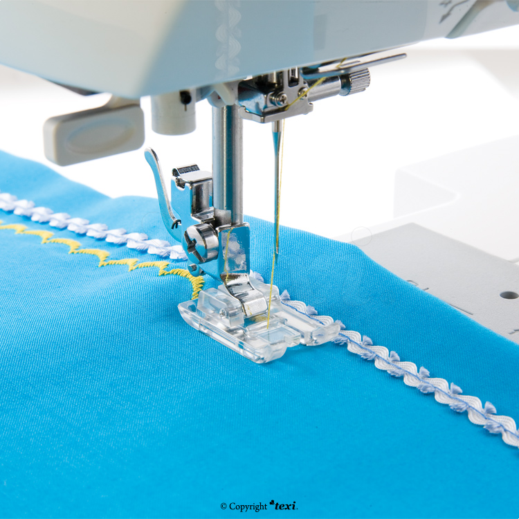 MATIC transparent application and decorative stitches foot. Wide gauge of runners (7 mm) and made of transparent plastic enables making application under full control