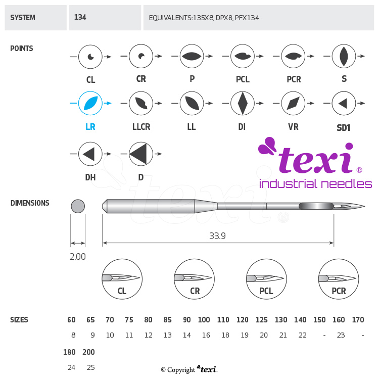 Product code TEXI 134 LR 110 Category Needles for industrial sewing machines