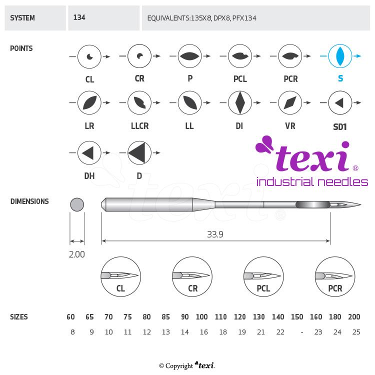 Product code TEXI 134 S 100 Category Needles for industrial sewing machines