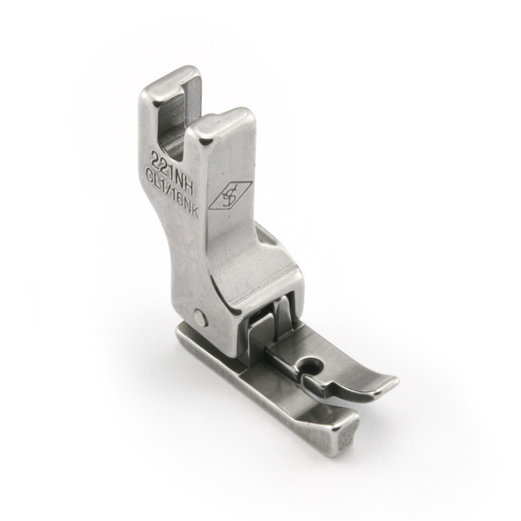 Left, narrow 1.6 mm compensating foot for fine knitted fabrics.
