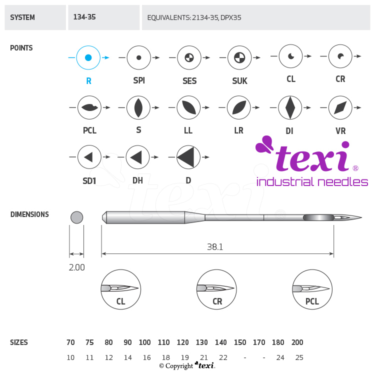 Product code TEXI 134-35 (R) 160 Category Needles for industrial sewing machines