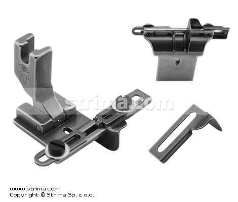 Foot for lockstitch machine with tape guide and left and right gauges