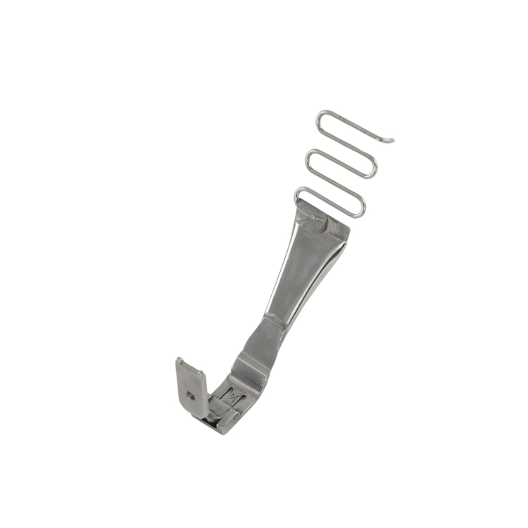 Tape attaching foot for double needle machines with 1/4" gauge