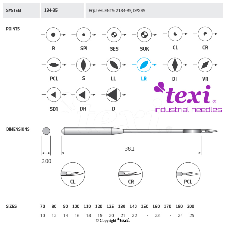Product code TEXI 134-35 LR 130 Category Needles for industrial sewing machines