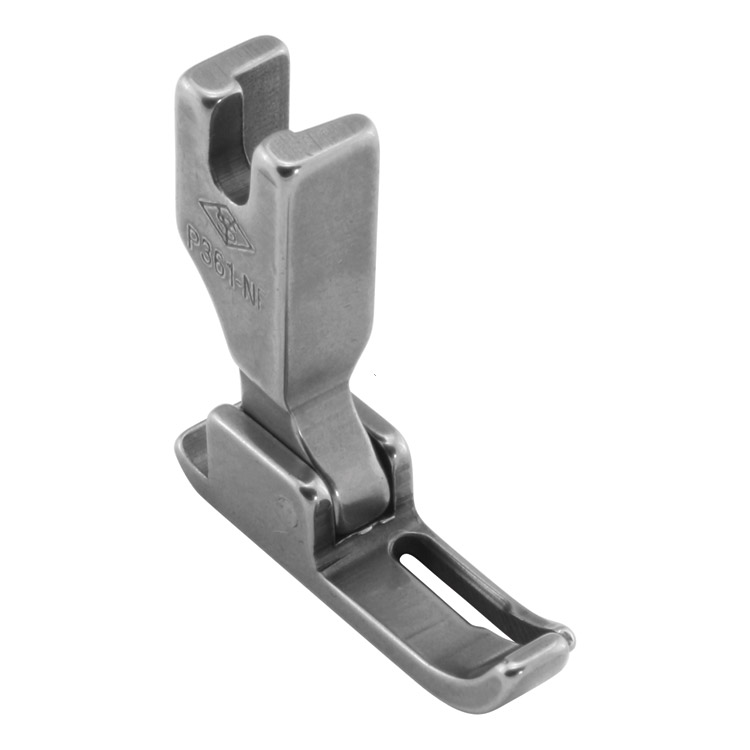 Foot for industrial sewing machines with needle feed.