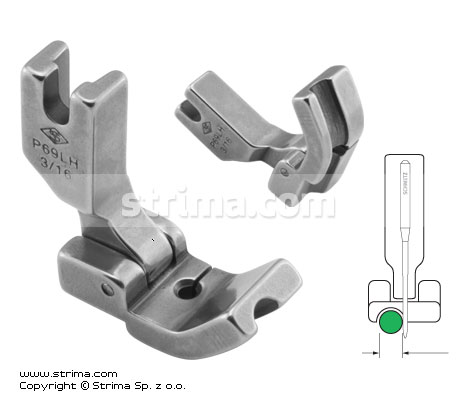 Hinged piping foot, left 4.8mm. Suitable for sewing in keder and cord. The foot structure ensures stable and precise operation in machines with bottom transport.