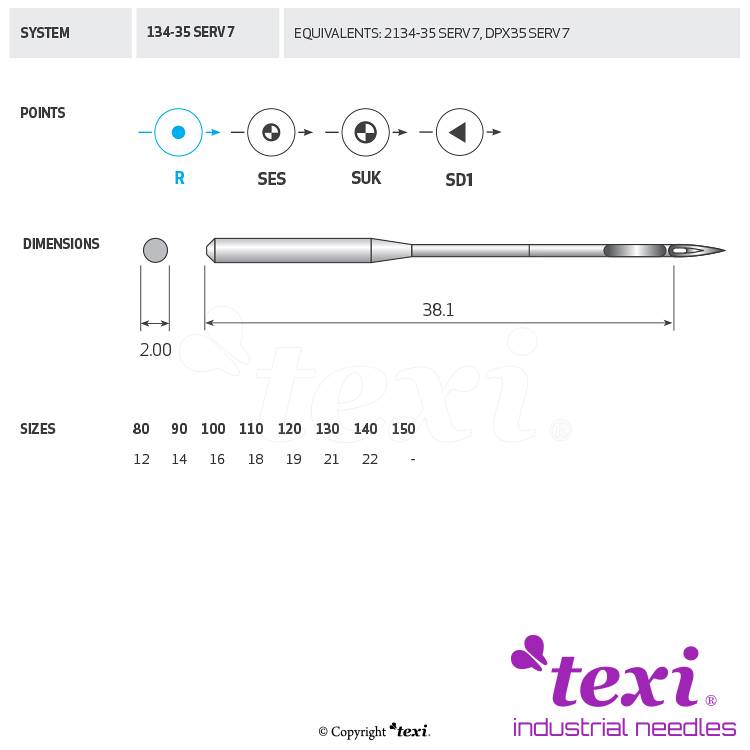 Product code TEXI 134-35 SERV 7 090 Category Needles for industrial sewing machines