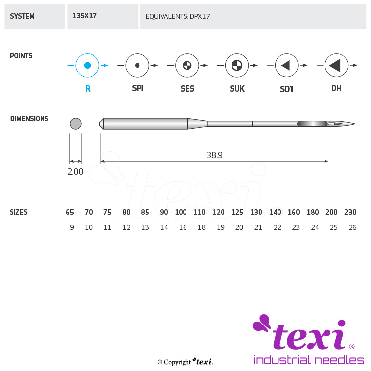 Product code TEXI 135X17 160 Category Needles for industrial sewing machines