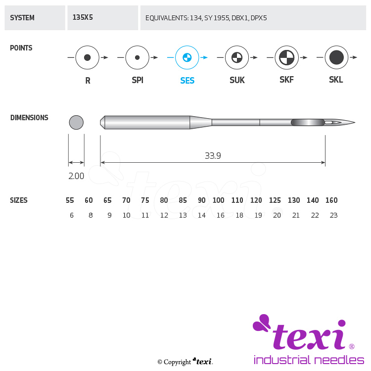 Product code TEXI 135X5 SES 080 Category Needles for industrial sewing machines