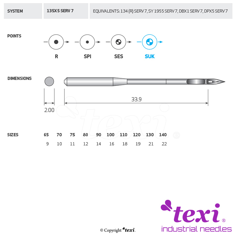 Product code TEXI 135X5 SUK SERV 7 080 Category Needles for industrial sewing machines