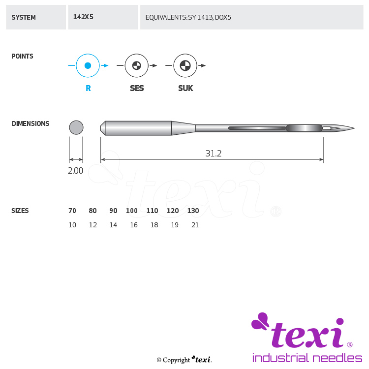Product code TEXI 142X5 100 Category Needles for industrial sewing machines