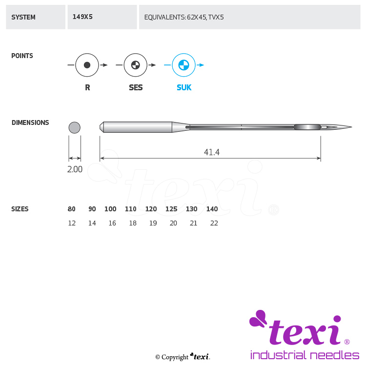 Product code TEXI 149X5 SUK 110 Category Needles for industrial sewing machines