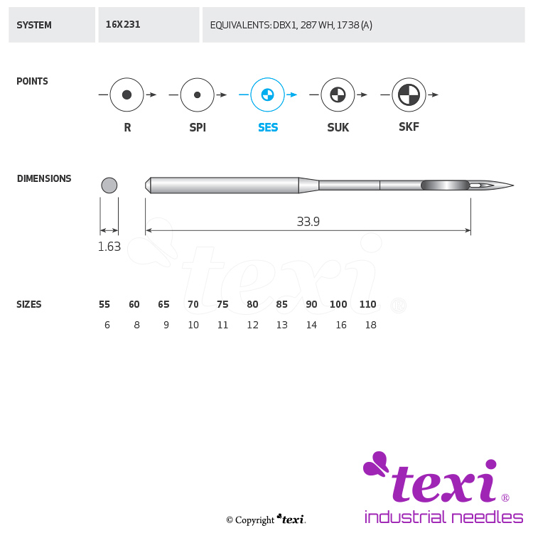 Product code TEXI 16X231 SES 090 Category Needles for industrial sewing machines