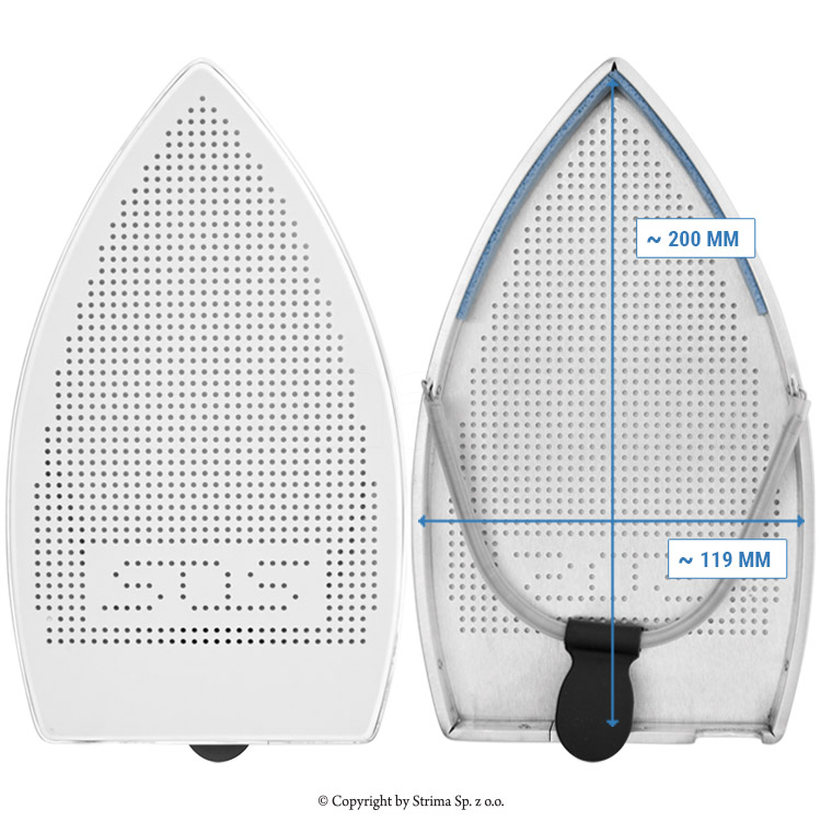 PTFE shoe reduces the temperature of ironing. It allows to receive a dry steam together with safe temperature for material.