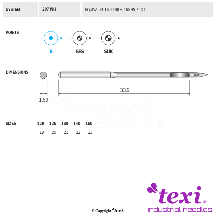 Product code TEXI 287 WH 120 Category Needles for industrial sewing machines