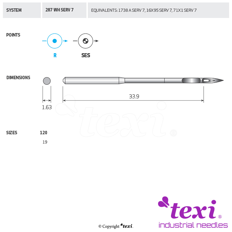 Product code TEXI 287 WH SERV 7 120 Category Needles for industrial sewing machines