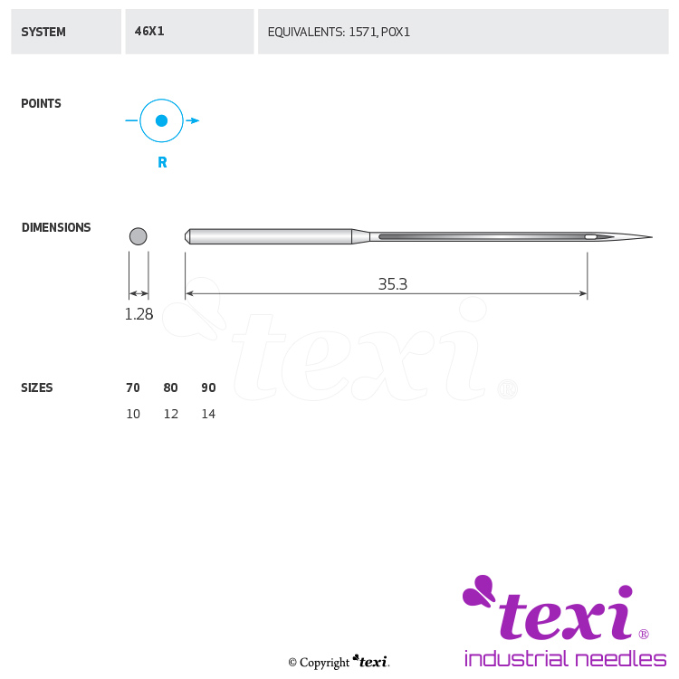 Product code TEXI 46X1 080 Category Needles for industrial sewing machines