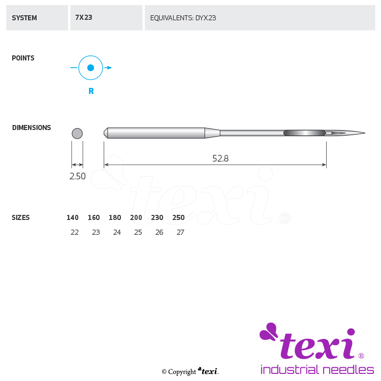 Product code TEXI 7X23 180 Category Needles for industrial sewing machines