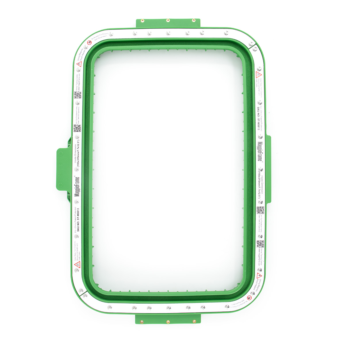 Starannie zaprojektowany tamborek magnetyczny do hafciarek wyposażony w silne magnesy, które sprawiają, że zapinanie i naprężanie materiału jest łatwe, szybkie i bezpieczne.