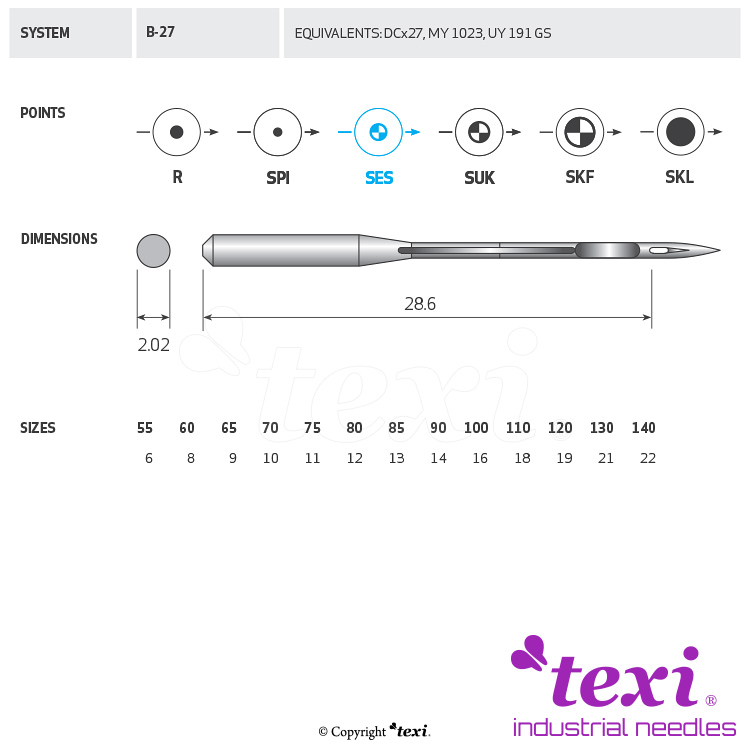 Product code TEXI B-27 SES 075 Category Needles for industrial sewing machines