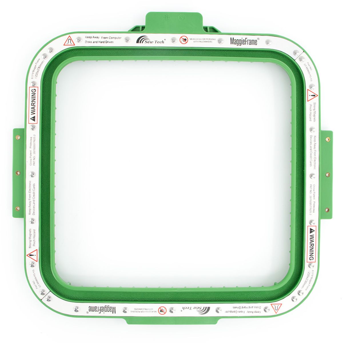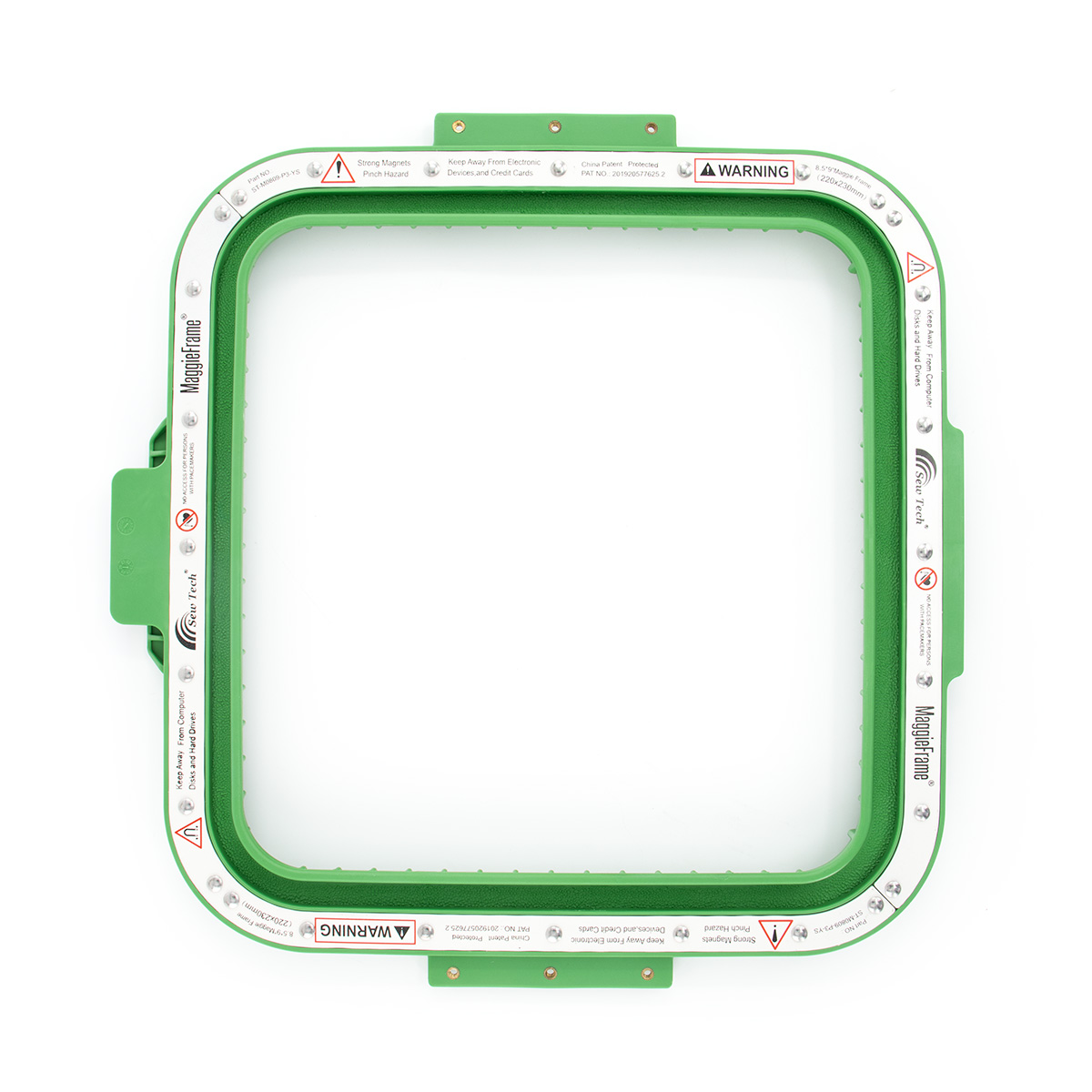Starannie zaprojektowany tamborek magnetyczny do hafciarek wyposażony w silne magnesy, które sprawiają, że zapinanie i naprężanie materiału jest łatwe, szybkie i bezpieczne.