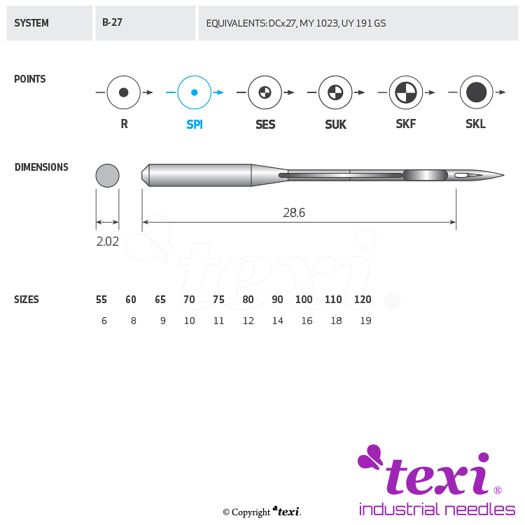 Product code TEXI B-27 SPI 090 Category Needles for industrial sewing machines