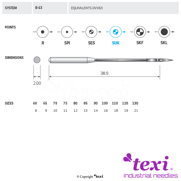 Product code TEXI B-63 SUK 080 Category Needles for industrial sewing machines