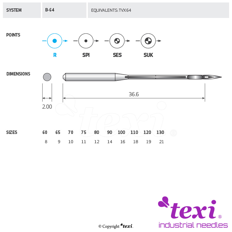 Product code TEXI B-64 120 Category Needles for industrial sewing machines