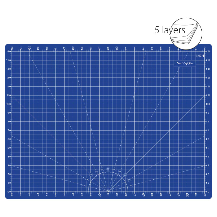 5-layer, double-sided TEXI BLUE 60X45 mat with centimeters and inches scale in navy blue color. Mat with marked angles and parallel lines with size: 60X45 cm.
