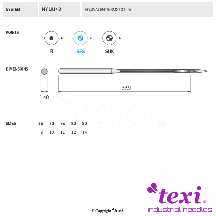 Product code TEXI MY 1014 B SES 070 Category Needles for industrial sewing machines