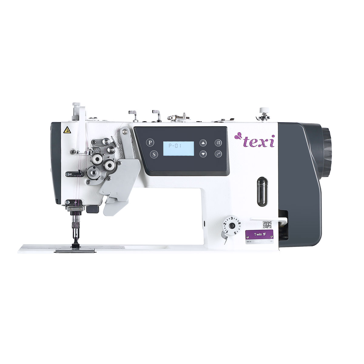 TEXI TWIN 1F to dwuigłowa stebnówka z transportem dolnym i igłowym do szycia materiałów lekkich i średnich. Zintegrowany silnik AC Servo zapewnia cichą, stabilną pracę bez wibracji. Lampa LED precyzyjnie oświetla pole pracy.