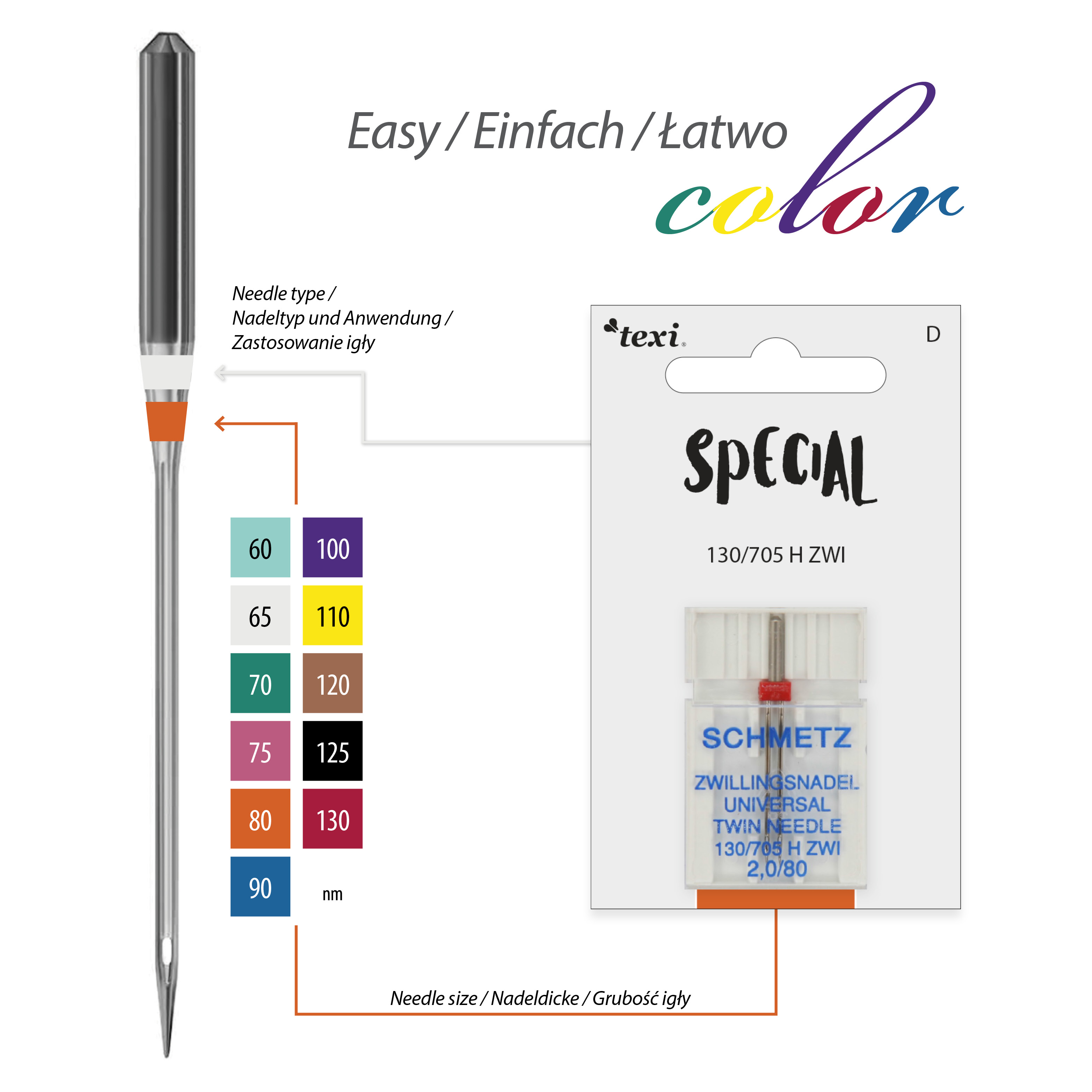 |TEXI UNI TWIN 130/705 H ZWI NE 2,5 80 Igły do ściegu ozdobnego do maszyn domowych, para, grubość 80, rozstaw 2,5 mm Cena:8,09 zł Dodaj do koszyka