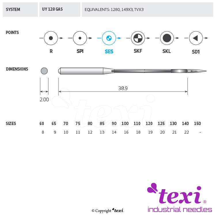 Product code TEXI UY 128 GAS SES 090 Category Needles for industrial sewing machines