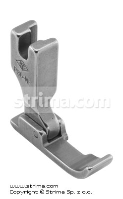 Stopka krawędziowa prawa do transportu igłowego o szerkości 8 mm. Możliwość zastosowania do wszywania zamków.
