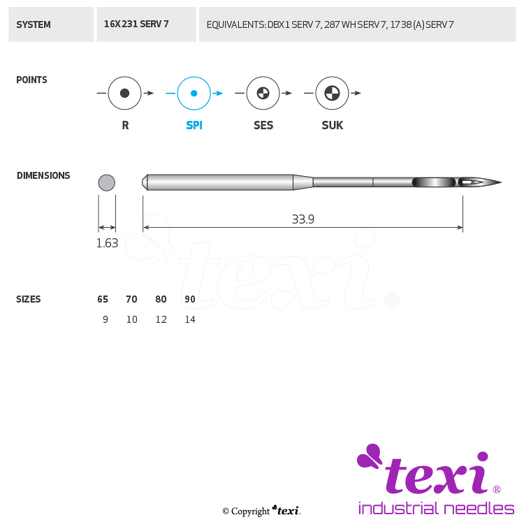 Kod produktu TEXI 16X231 SPI SERV 7 080 Kategoria Igły do maszyn przemysłowych